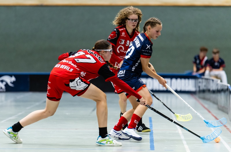 Selbstbewusst starteten die Dragons ins Match und setzten schon bald ein Zeichen. Bereits nach sechs Minuten zappelte der Ball im Netz der Red Devils! Friederike Schlotmann verwandelte eiskalt nach Vorarbeit von Sarah Olfe – 0:1 für Bonn!