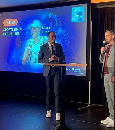 Sieger der Abstimmung und damit GA-Sportler des Jahres ist der SSF-Triathlet Lasse Lührs als Gewinner der Goldmedaille mit der Mixed-Team-Staffel bei den Olympischen Spielen in Paris. Die Trophäe überreichte GA-Geschäftsführer Kersten Köhler.