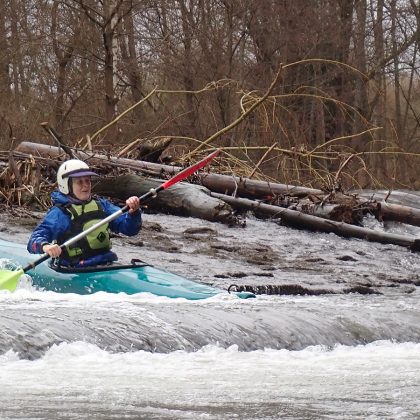 Einen schönen und etwas abenteuerlichen Spätwintertag verbrachten wir auf der Sülz: Baumhindernisse, üppige Brombeerranken und überhaupt war Kleinflusstechnik gefragt