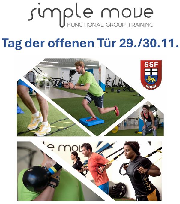 Am Samstag, 29.11., und Sonntag, 30.11., habt ihr jeweils von 10:00 Uhr bis 14:00 Uhr die Möglichkeit euch verschiedene Kurse des Simple Move in einer kurzen Variante zum Reinschnuppern anzuschauen. Gleichzeitig stehen euch unsere Trainer bei einem kleinen Snack Rede und Antwort.