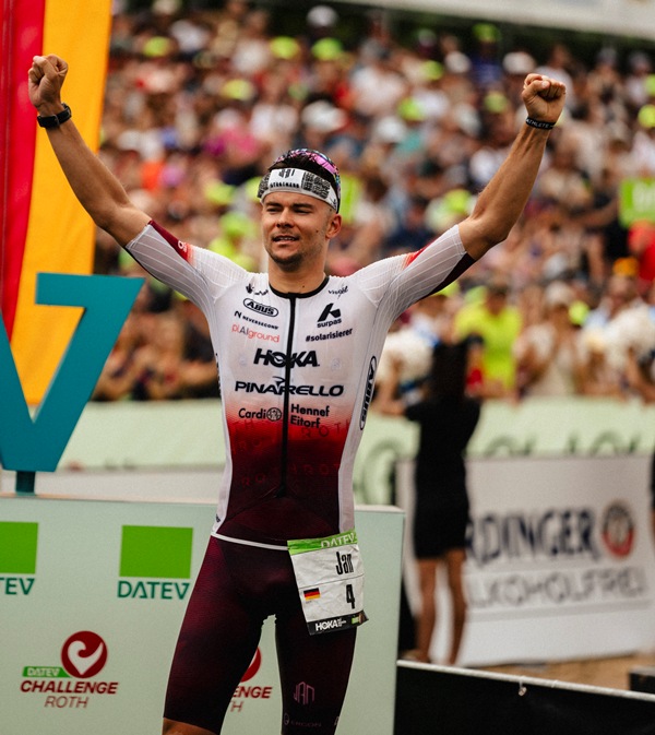 Beim legendären Ironman in Roth erreichte Jan in diesem Jahr trotz eines Sturzes einen hervorragenden 3. Platz. Zu absolvieren waren eine Schwimmstrecke von 3,8 km, eine Radstrecke von 180 km und ein abschließender Marathonlauf (42,2 km). Insgesamt waren über 3500 Aktive waren Start.