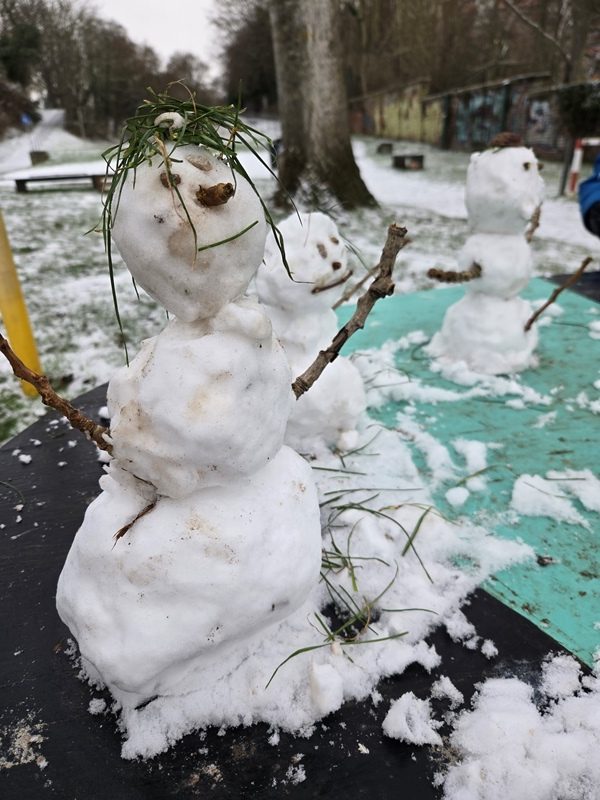 Der erste Schnee des Jahres verwandelte das Schulgelände und das gesamte Vedel in eine winterliche Landschaft und ließ der Fantasie der Kinder freien Lauf: Mit viel Freude und Begeisterung entstanden zahlreiche Schneemänner, von denen einige auf den Bildern zu sehen sind. Ob groß oder klein, klassisch oder fantasievoll – jedes Kunstwerk zeigt die Kreativität und den Teamgeist der Kinder.