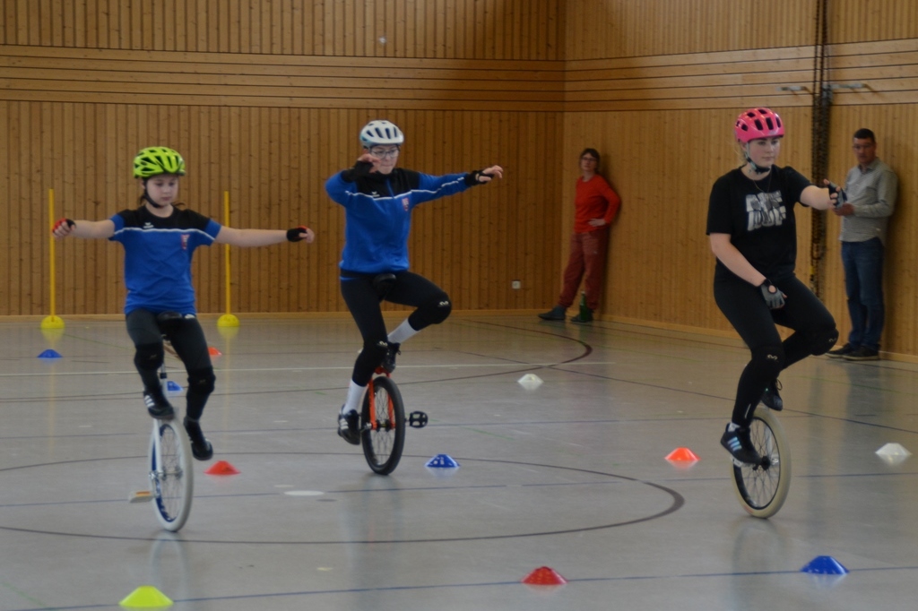 In den klassischen Renn-Disziplinen wie „100 m“ und „200 m“, deren Strecken in der Halle verkürzt wurden, sowie im IUF-Slalom und langsam vorwärts wurden die diesjährigen Vereinsmeisterinnen ermittelt. Diese wurden durch weitere Disziplinen für fortgeschrittene Fahrer*innen, wie einbein, radlauf, hüpfen und langsam rückwärts ergänzt. Zudem sorgte passend zum Beginn der Osterferien ein Eierlauf auf dem Einrad für Abwechslung. Den Abschluss des Tages bildeten verschiedene Teamaufgaben, darunter eine geloste Pendelstaffel.