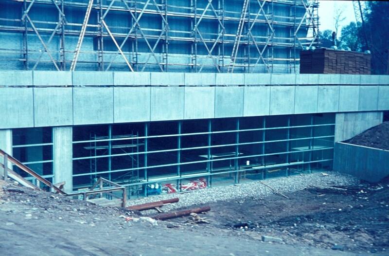 - Beim Bau des Sportpark Nord treten erhebliche Gründungsschwierigkeiten auf, verursacht durch Fließsand in einem vor 300 Jahren vorhandenen Seitenarm des Rheins, so dass man erst in 12 bis 15 Meter Tiefe auf tragfähigen Grund stößt. Der zuständige Architekt Ernst van Dorp entwickelt daraufhin zusammen mit Hermann Nettersheim und Hermann Henze die Idee, unter der geplanten Sporthalle noch eine Schwimmhalle (50 x 20 m) zu errichten.