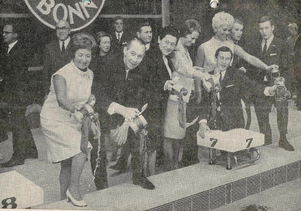 Einweihung des Schwimmbades v.l. Leni Henze-Lohmar, Ernst Küppers, Reni Küppers-Erkens, Ursula Happe-Krey, Heinz-Günther Lehmann, Wiltrud Haverkampf-Urselmann, Gerhard Hetz, Michael Holthaus